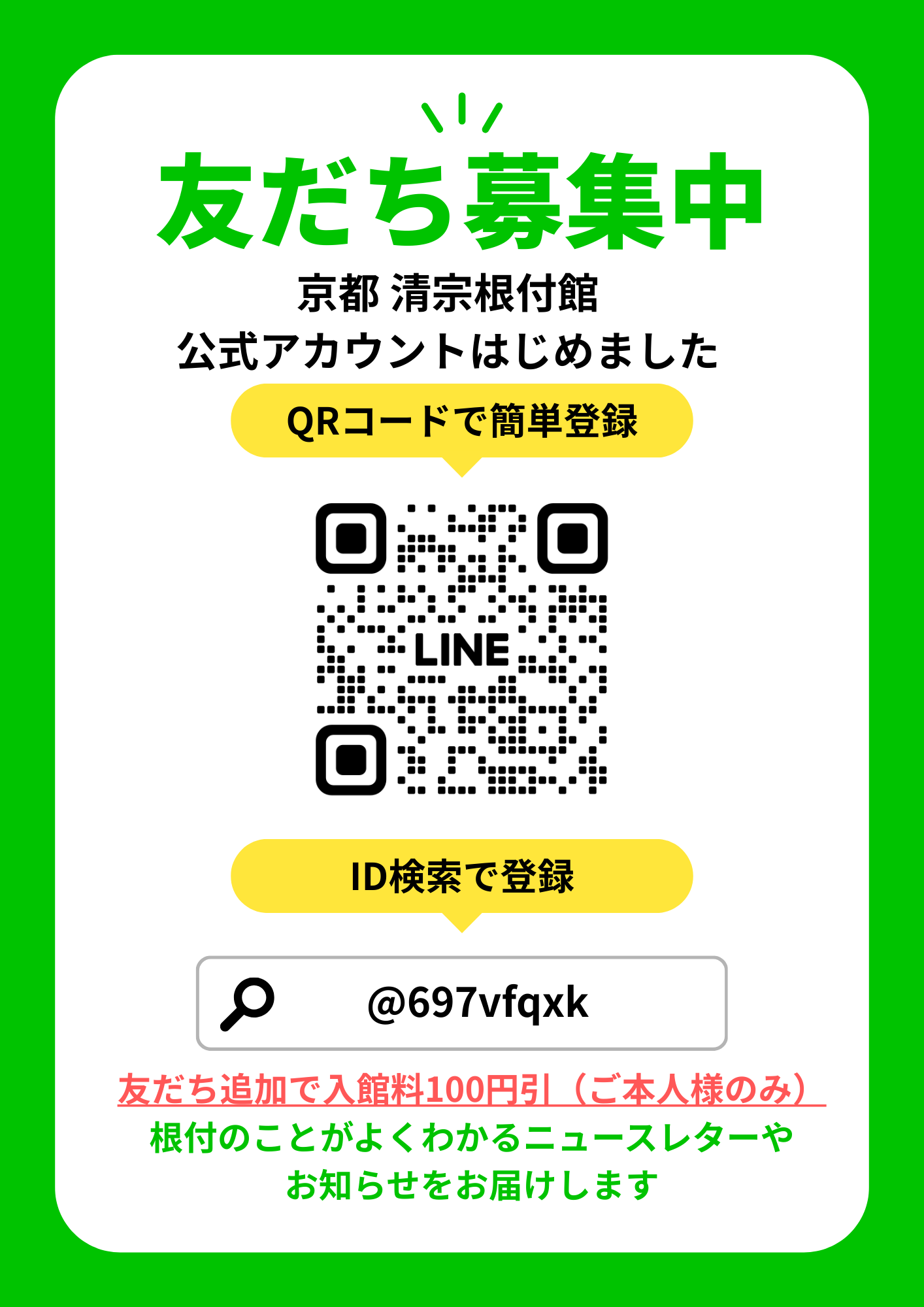 友だち追加後に、公式LINEからスマートフォンに届いたメッセージ画面を受付でご提示くださったかたへ、来館時に100円引きいたします。
